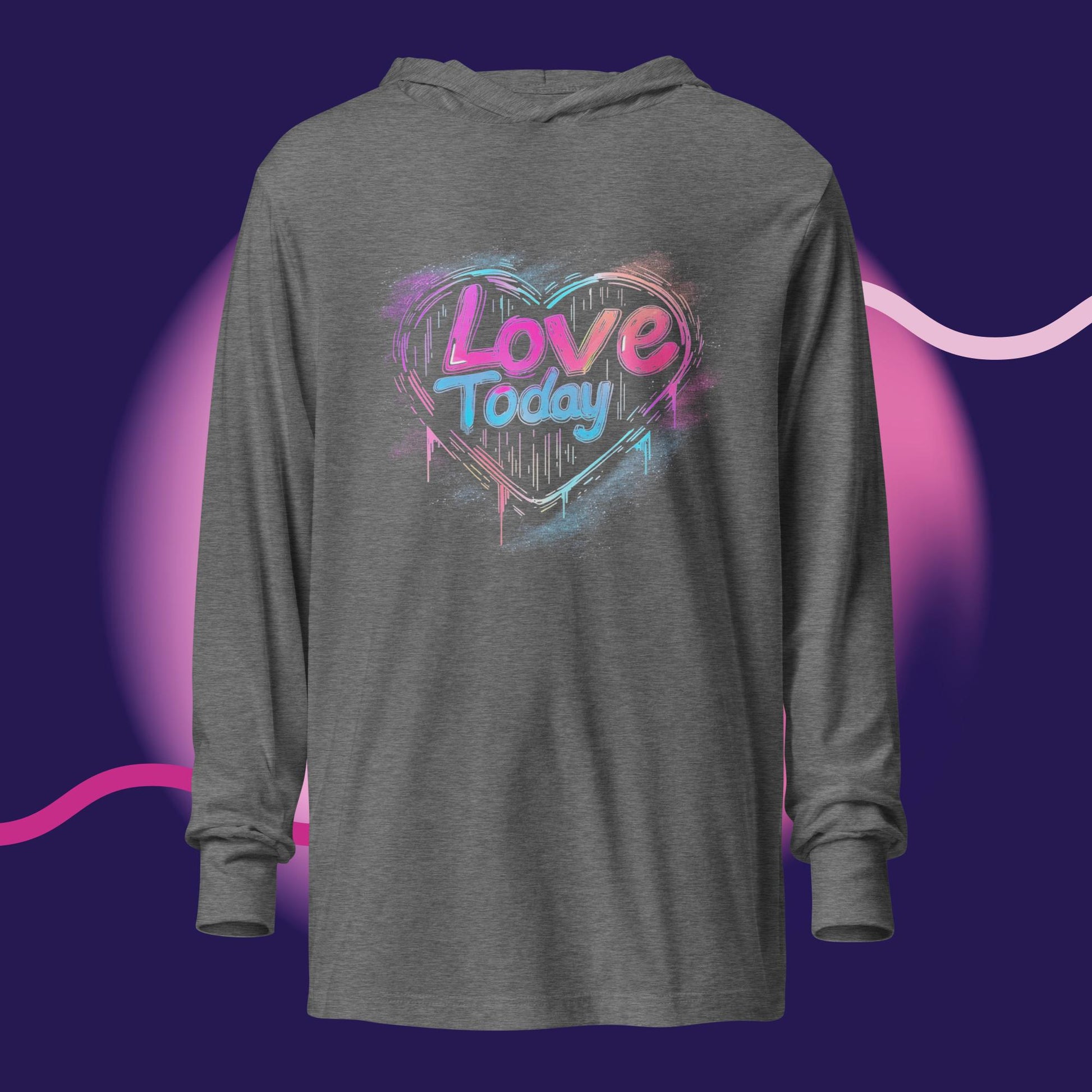 Wrap yourself in the luminous love of our Neon Heartbeat - Embrace Hoodie. This hooded long sleeve tee is your shield against the mundane, with a glowing heart and "Love Today" message that shines even on the cloudiest days. The soft fabric ensures warmth and comfort, while the hood adds a touch of mystery to your look. Perfect for those cooler evenings when you need a little extra warmth to keep the party going.
