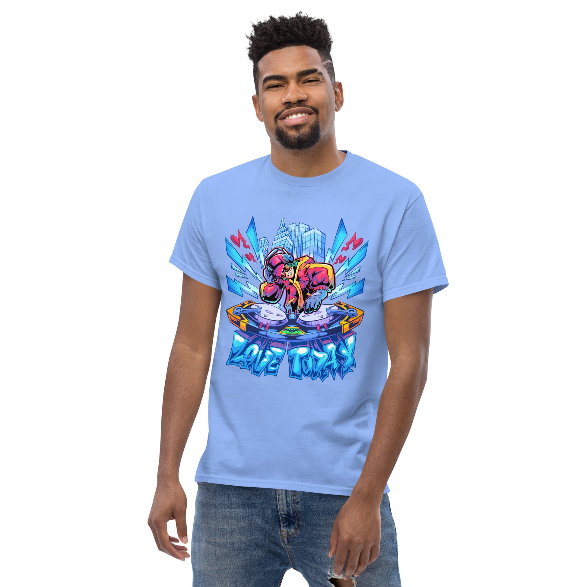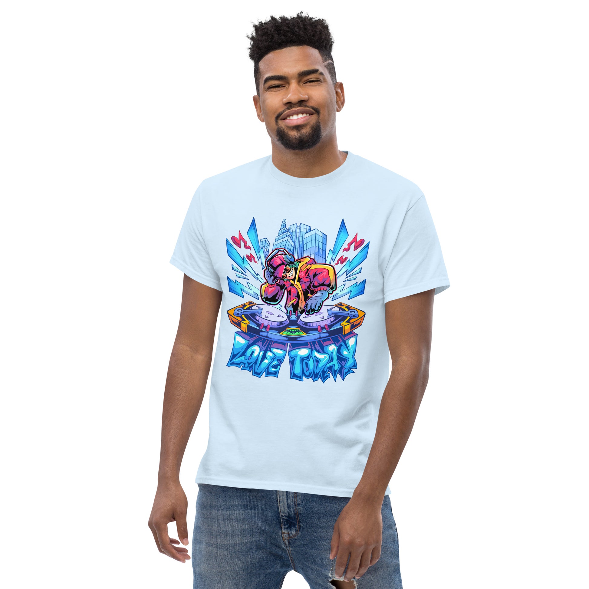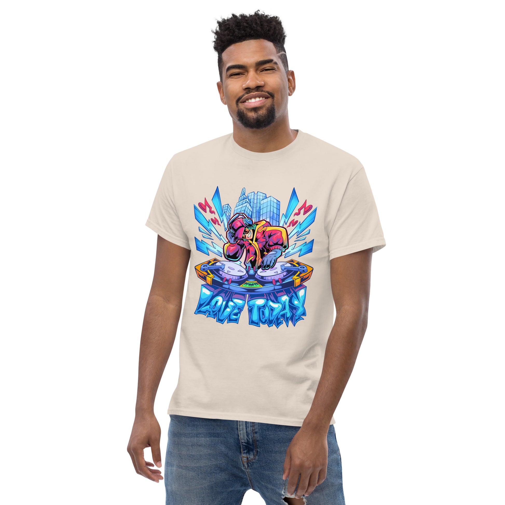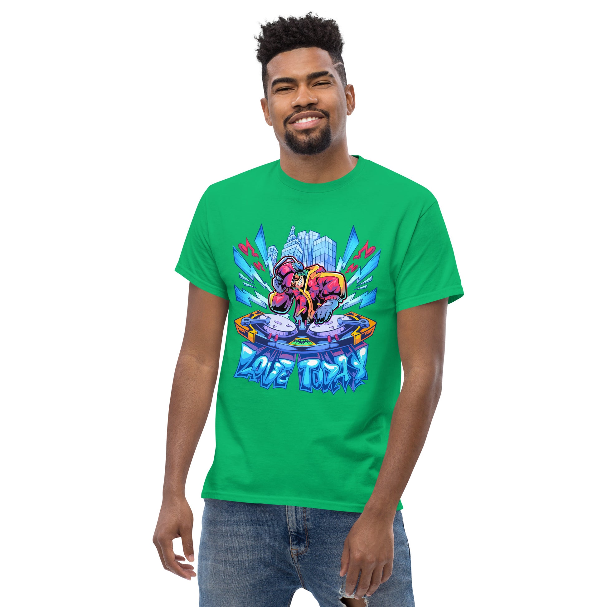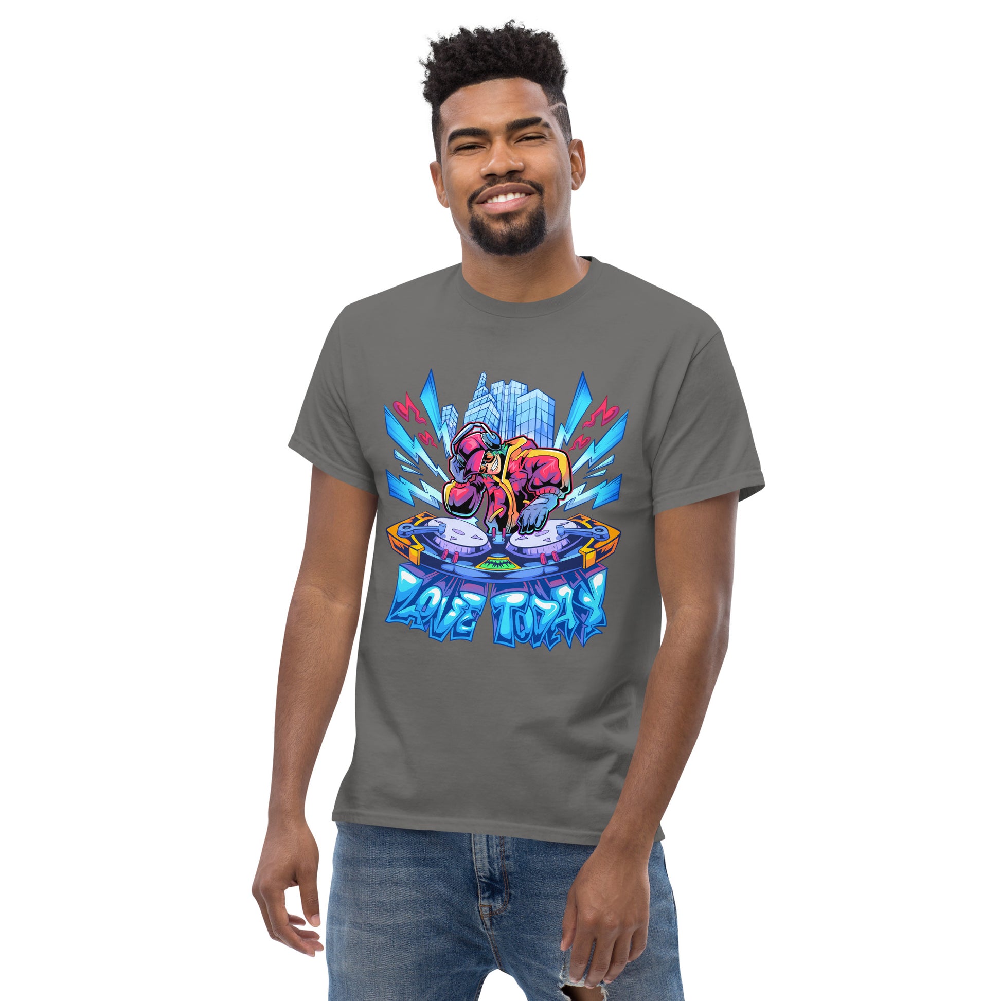 The 100% cotton men's classic tee will help you land a more structured look. It sits nicely, maintains sharp lines around the edges, and goes perfectly with layered streetwear outfits. Plus, it's extra trendy now!
