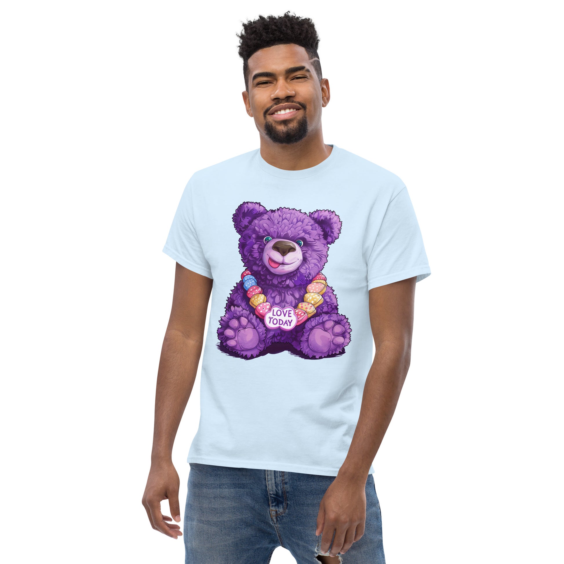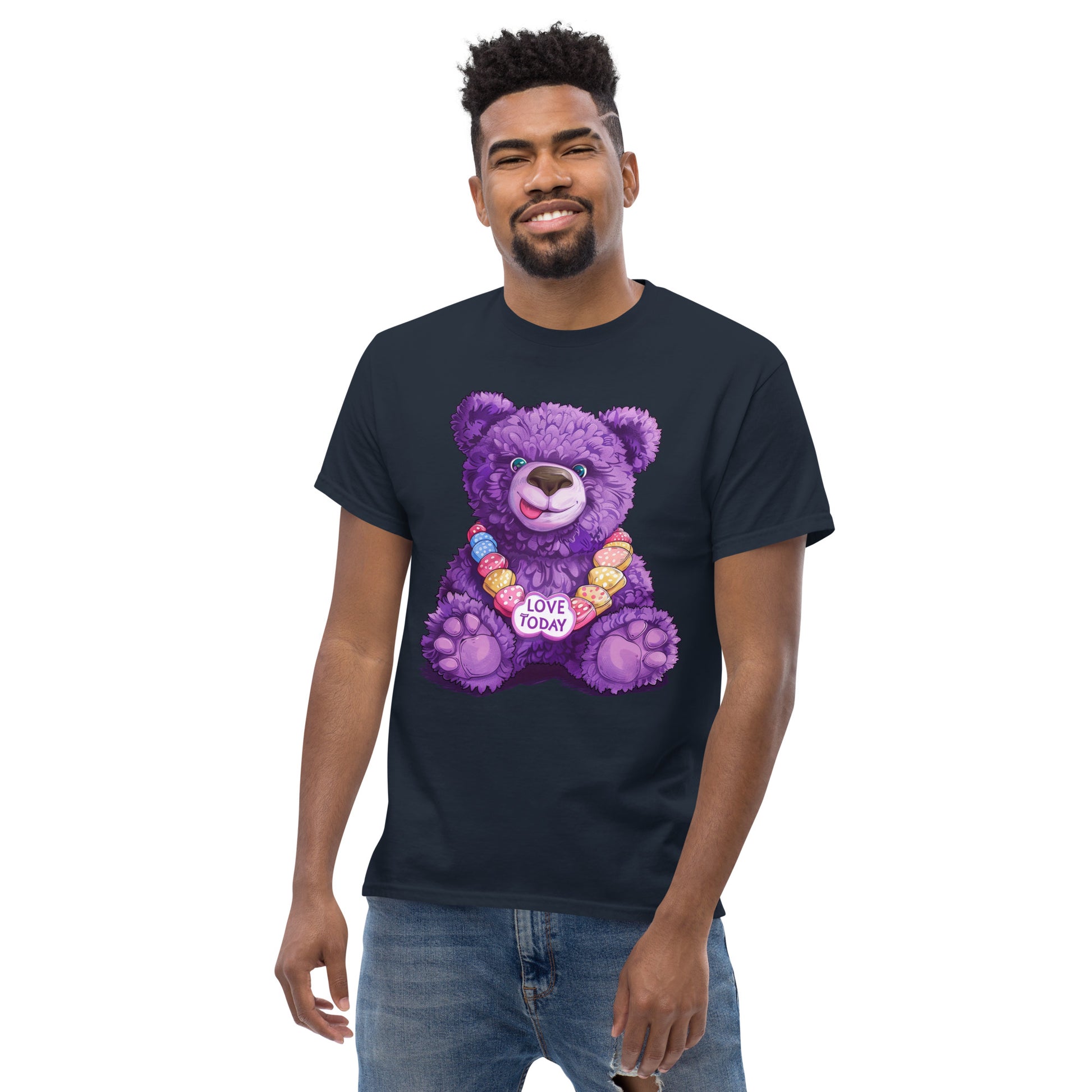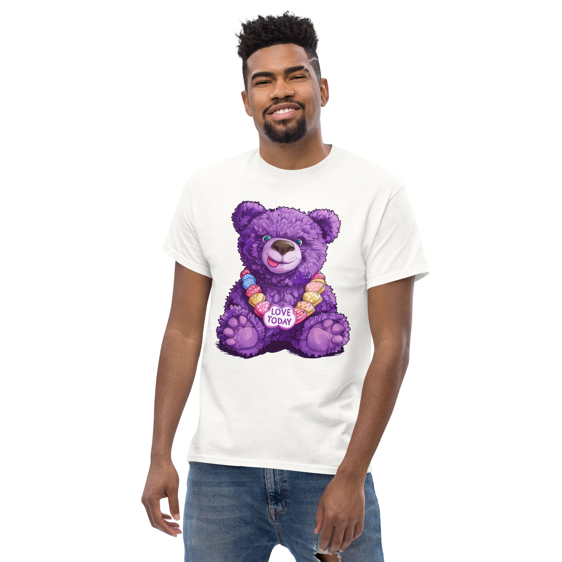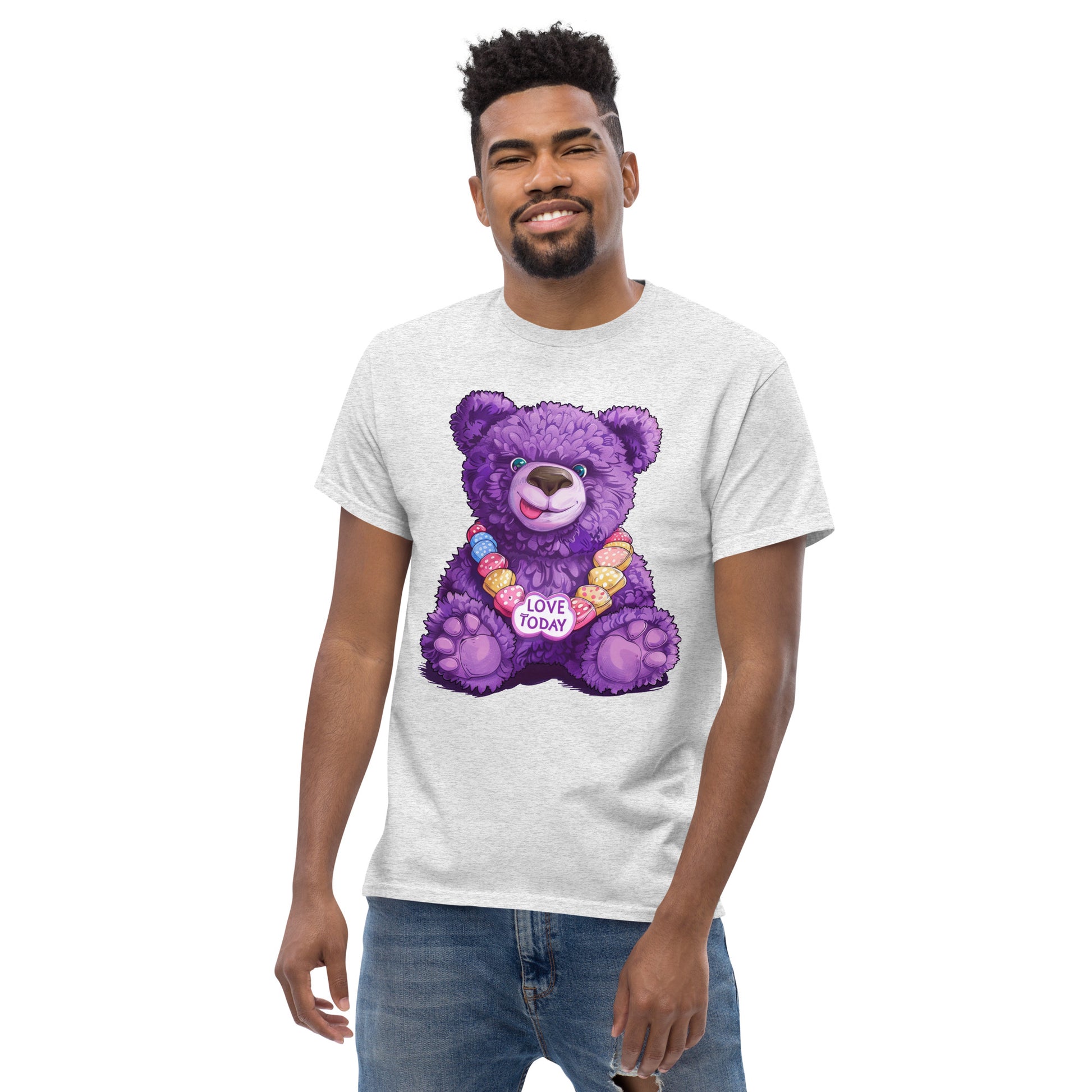 Join the "Cuddle Crew" with our Party Bear T-Shirt, where comfort meets jubilant design. This tee features the cheerful purple Party Bear, ready to bring a smile and a splash of fun to your day. Emblazoned with candy hearts that echo the "Love Today" motto, it's a wearable reminder to embrace the sweetness of life. Perfect for those who love to wear their heart on their tee and spread happiness wherever they go.