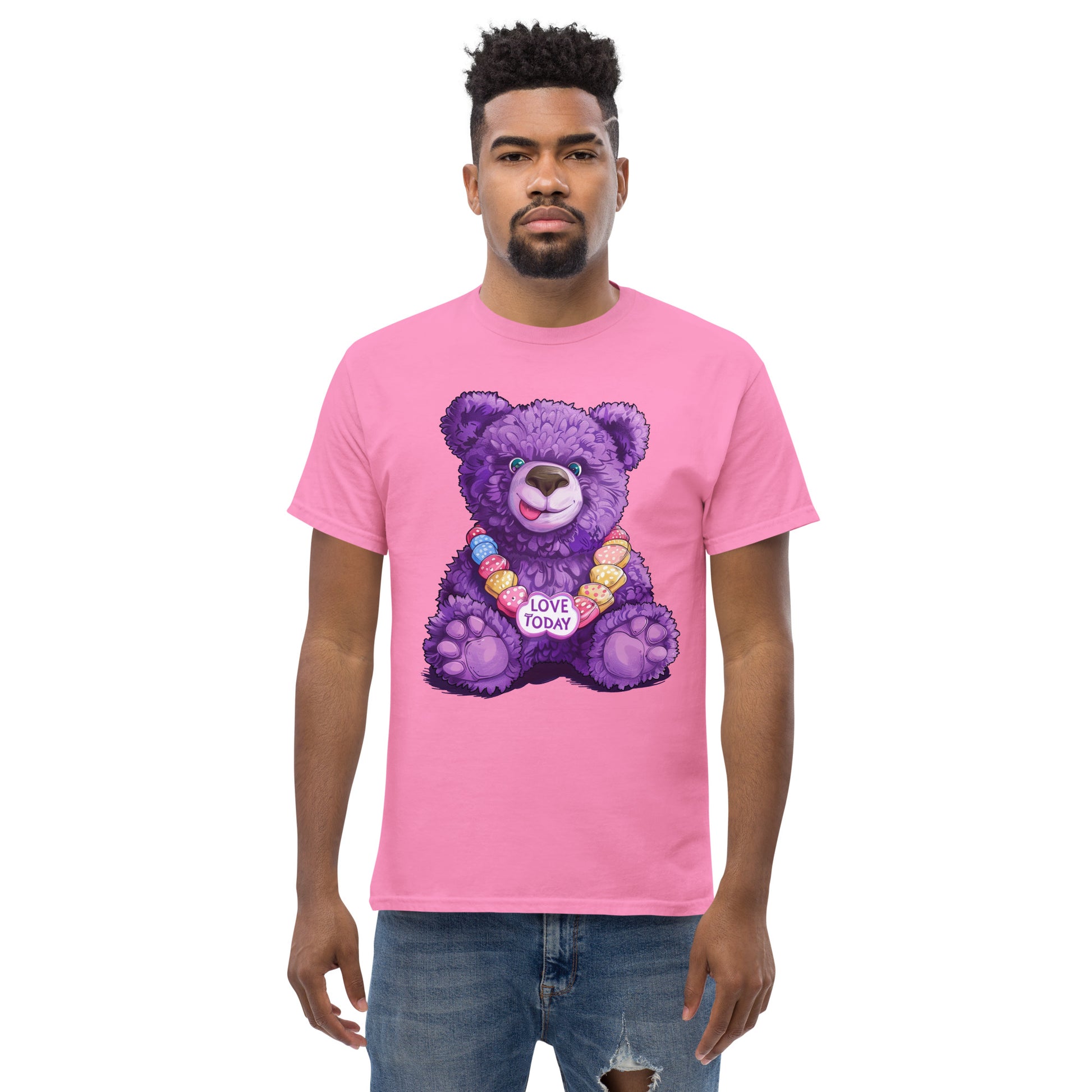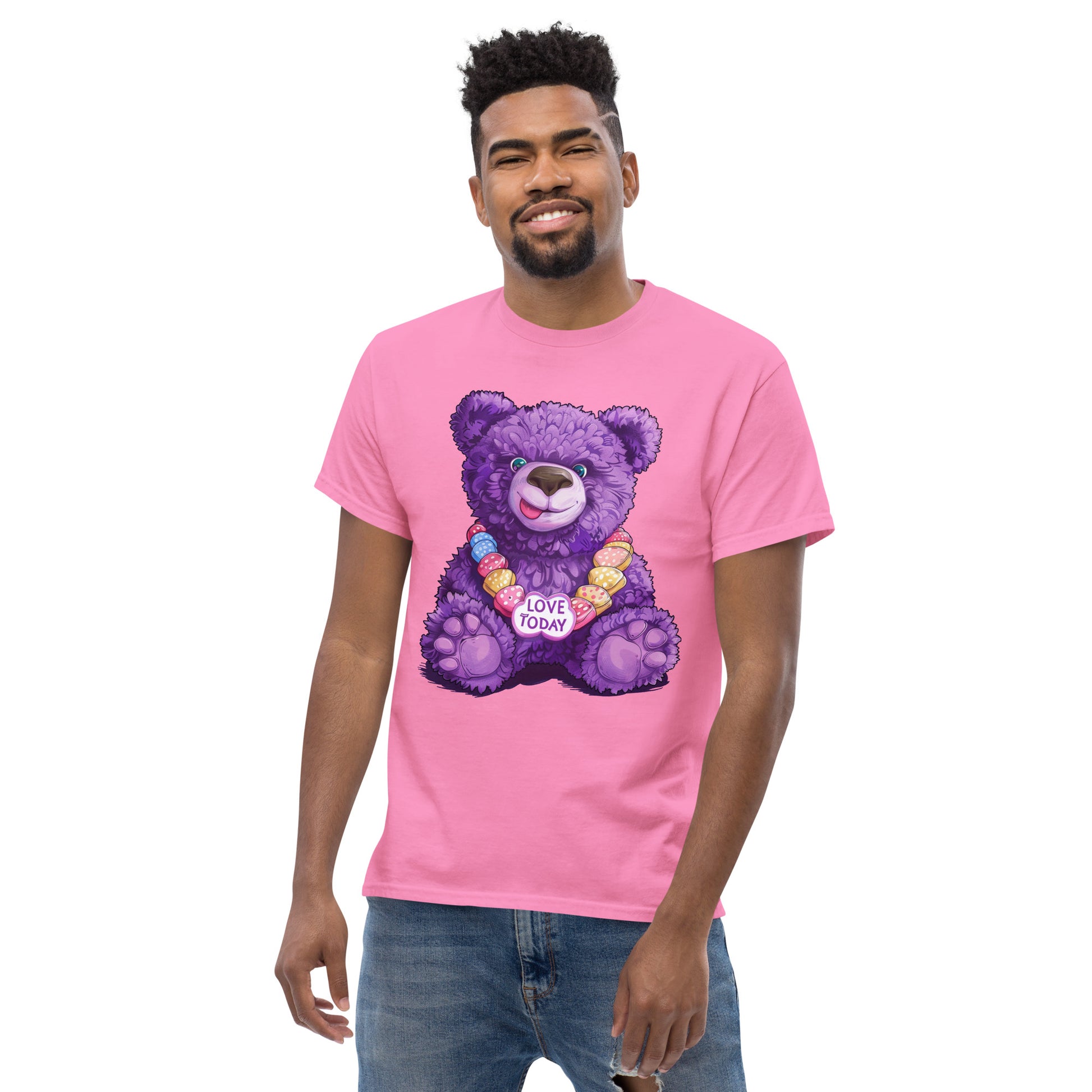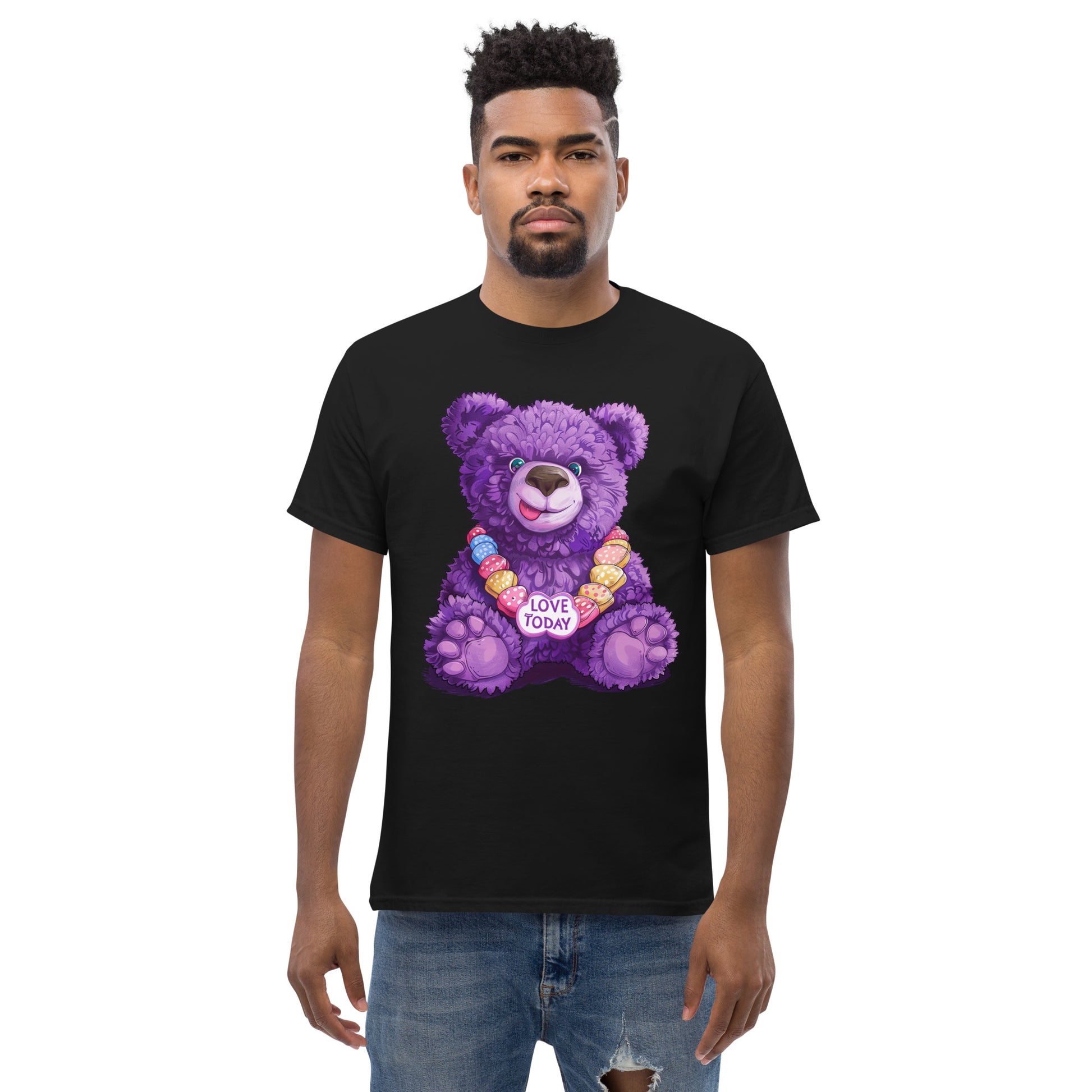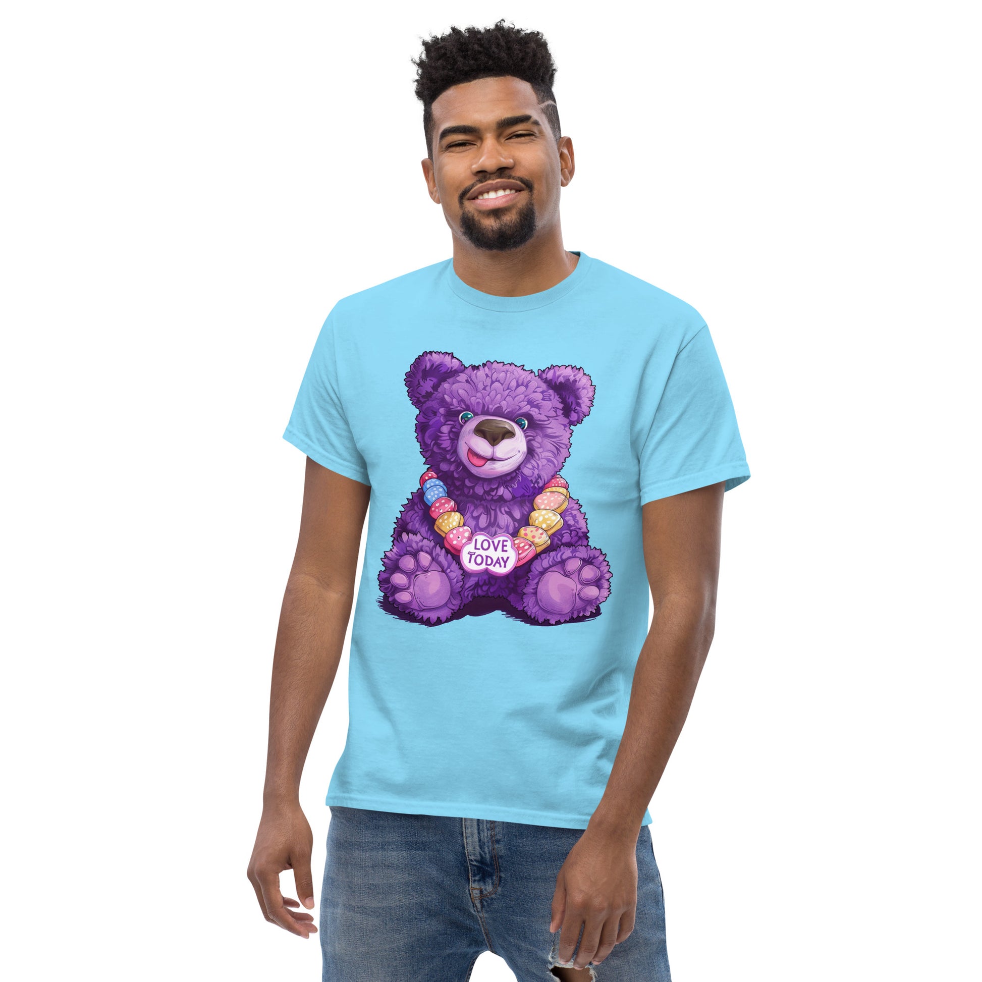 Join the "Cuddle Crew" with our Party Bear T-Shirt, where comfort meets jubilant design. This tee features the cheerful purple Party Bear, ready to bring a smile and a splash of fun to your day. Emblazoned with candy hearts that echo the "Love Today" motto, it's a wearable reminder to embrace the sweetness of life. Perfect for those who love to wear their heart on their tee and spread happiness wherever they go.
