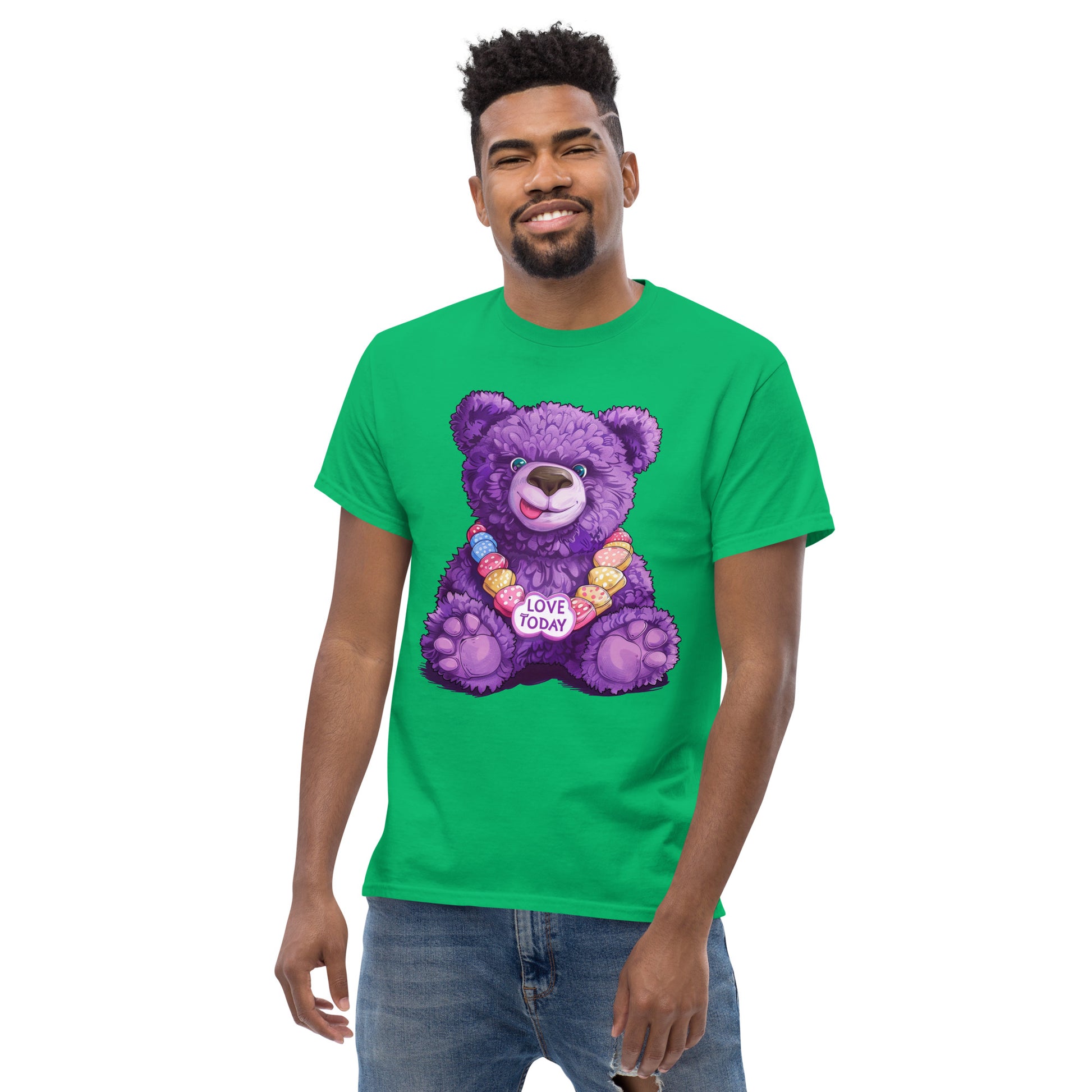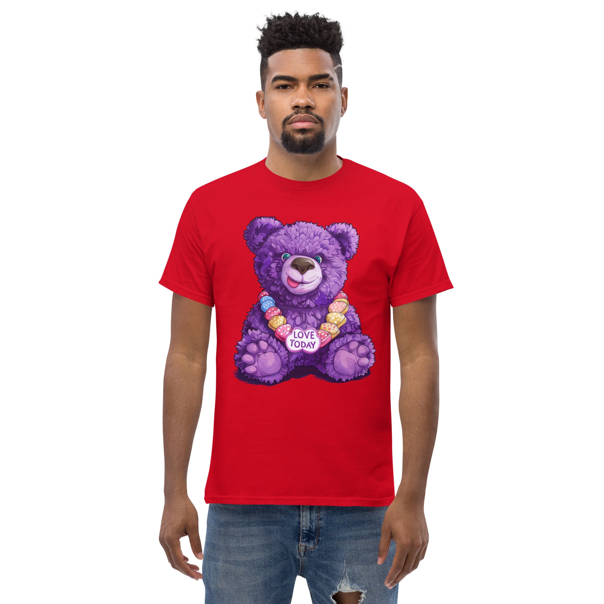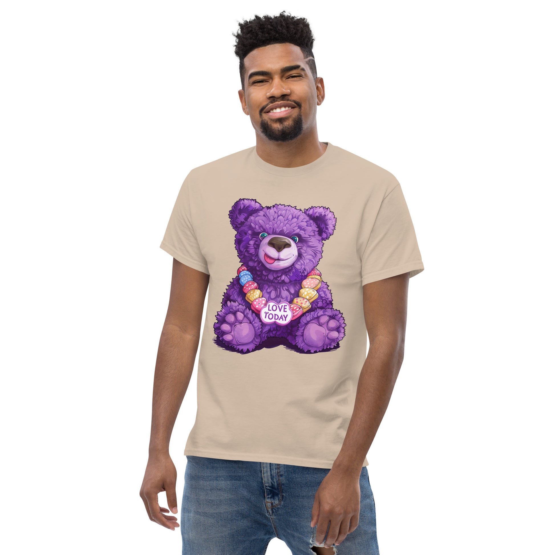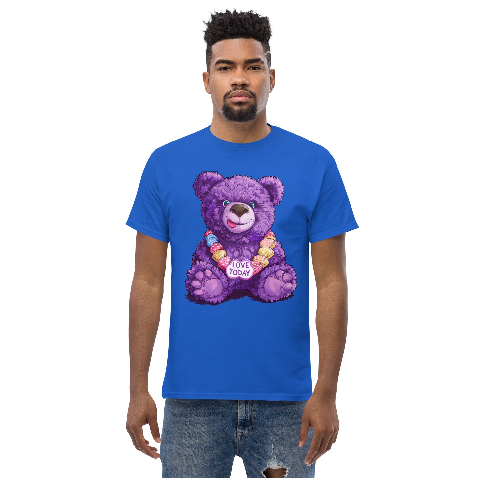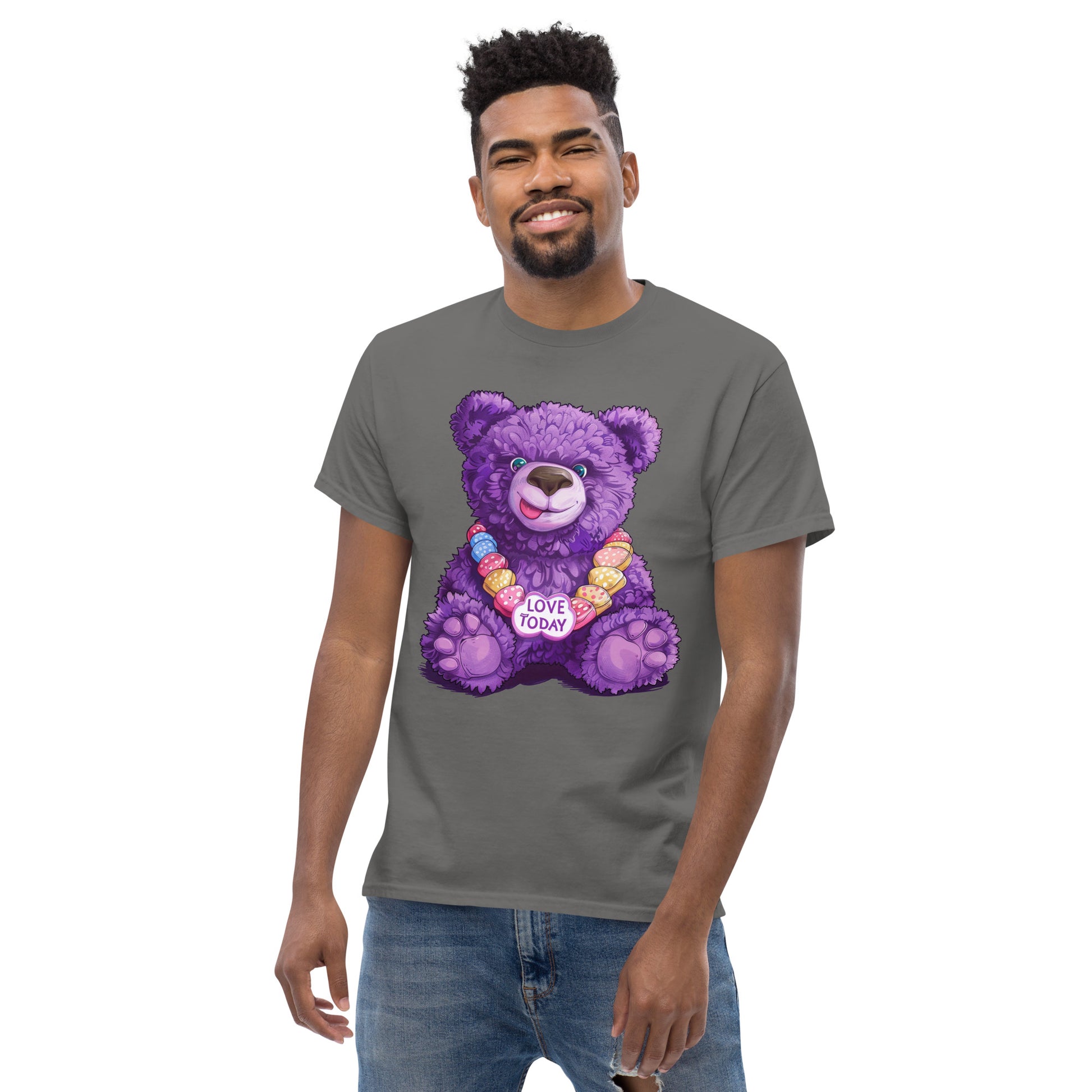 Join the "Cuddle Crew" with our Party Bear T-Shirt, where comfort meets jubilant design. This tee features the cheerful purple Party Bear, ready to bring a smile and a splash of fun to your day. Emblazoned with candy hearts that echo the "Love Today" motto, it's a wearable reminder to embrace the sweetness of life. Perfect for those who love to wear their heart on their tee and spread happiness wherever they go.