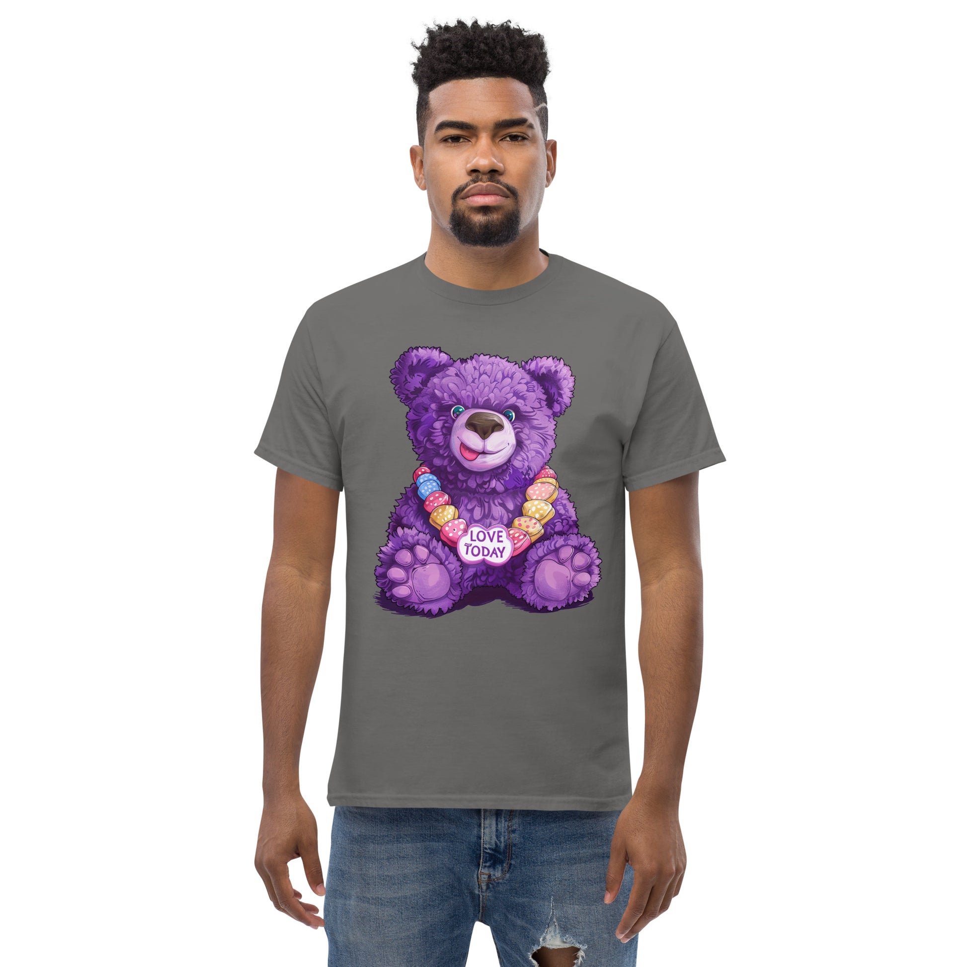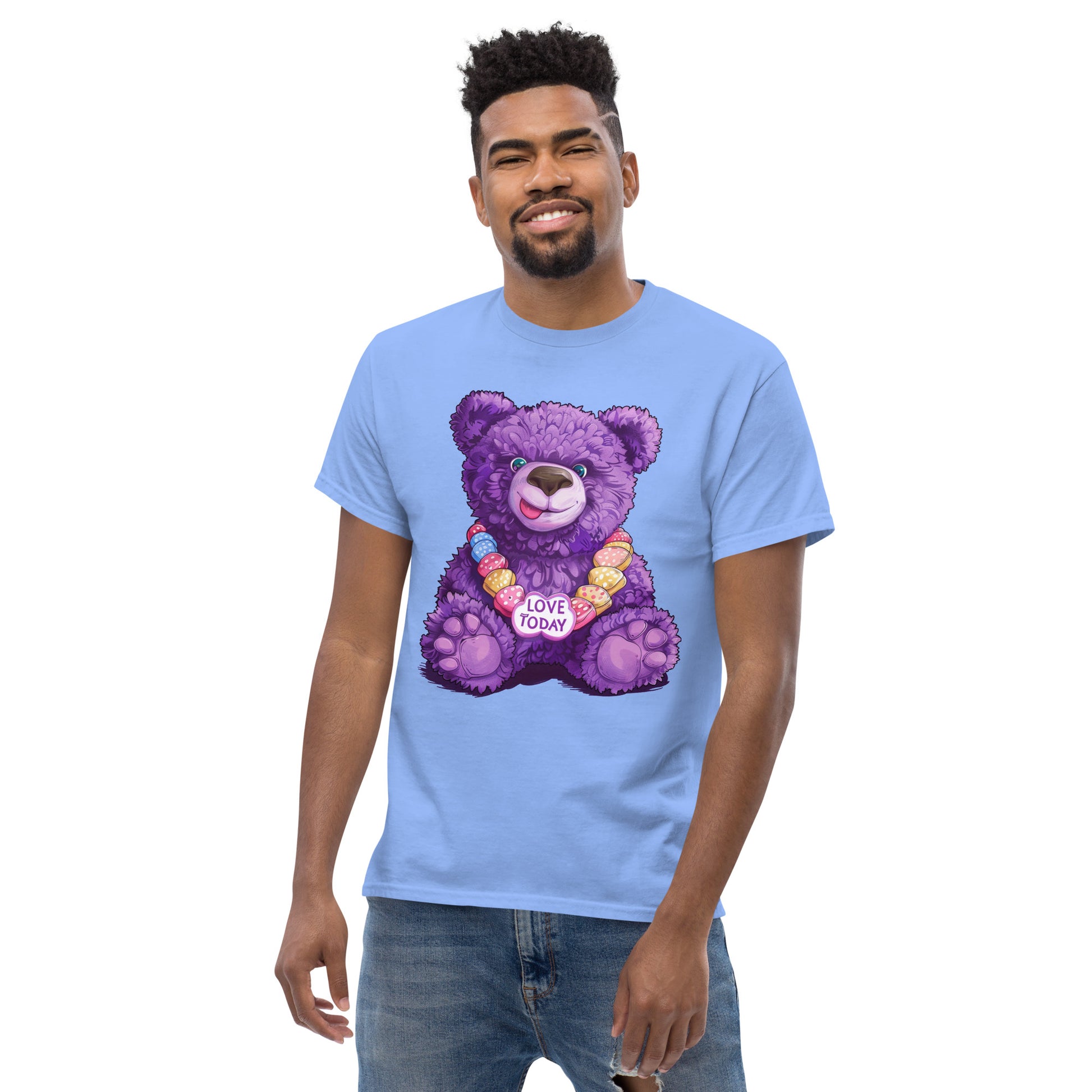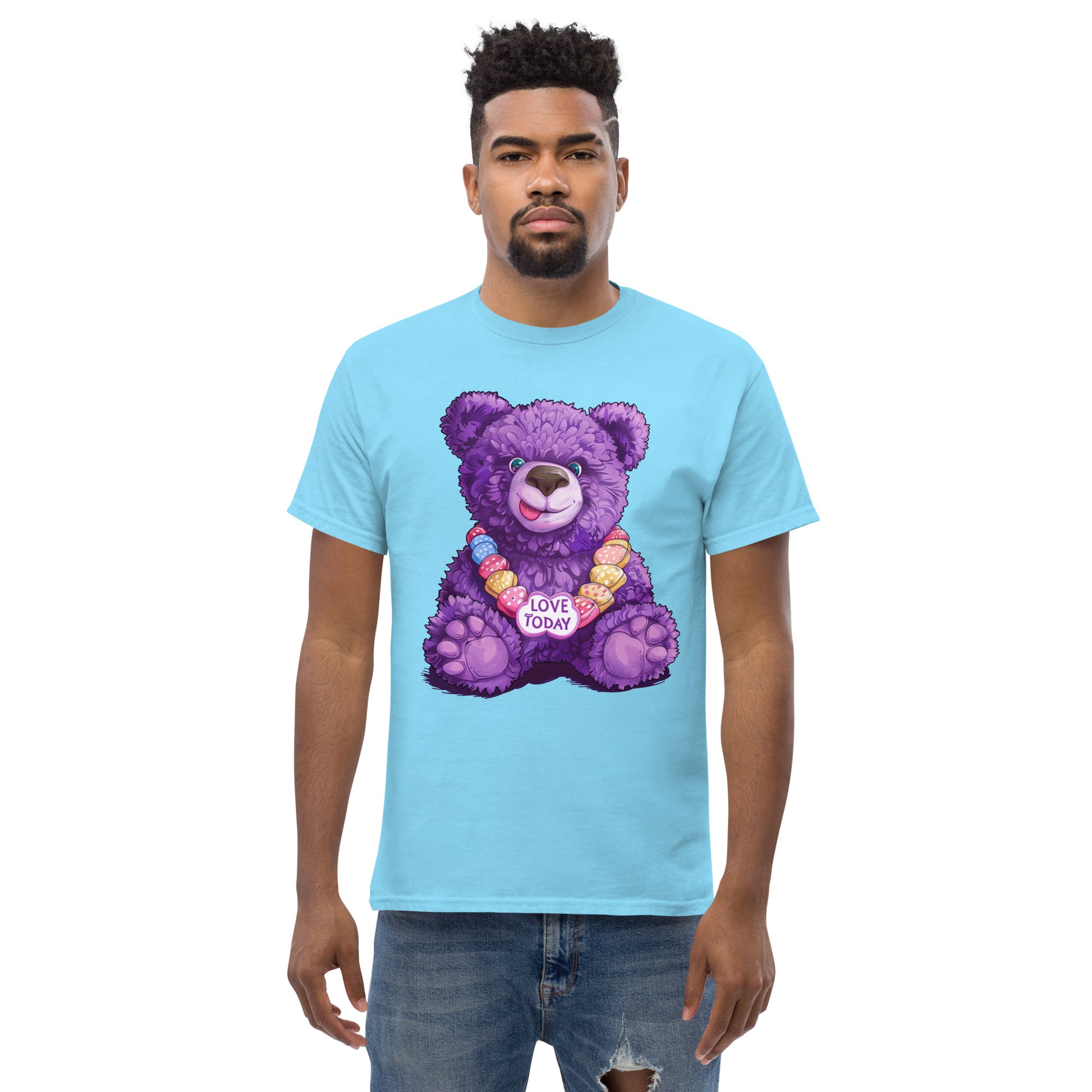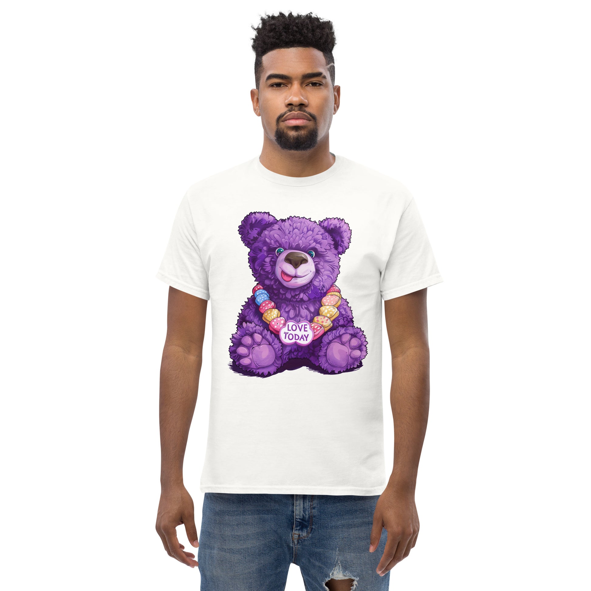 Join the "Cuddle Crew" with our Party Bear T-Shirt, where comfort meets jubilant design. This tee features the cheerful purple Party Bear, ready to bring a smile and a splash of fun to your day. Emblazoned with candy hearts that echo the "Love Today" motto, it's a wearable reminder to embrace the sweetness of life. Perfect for those who love to wear their heart on their tee and spread happiness wherever they go.