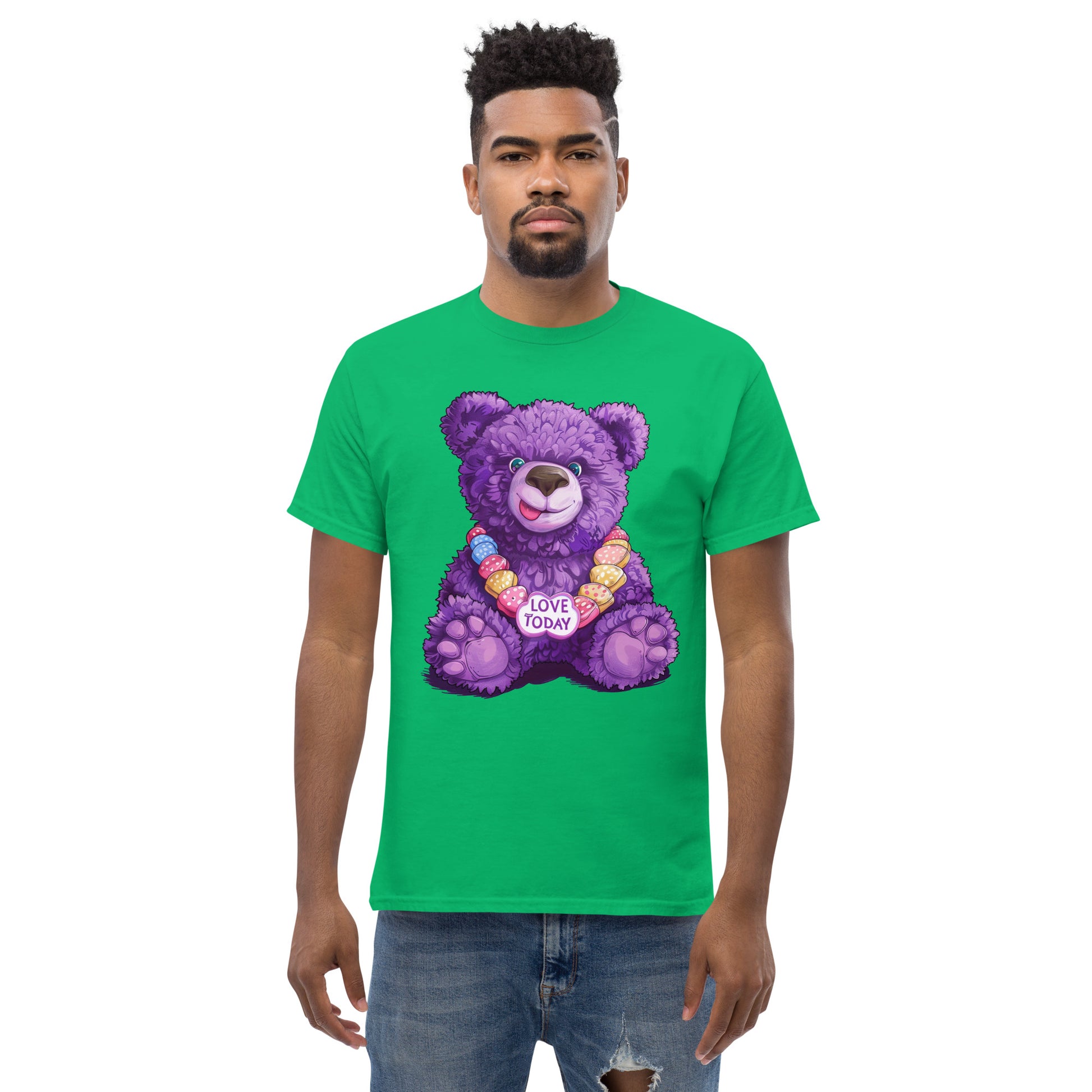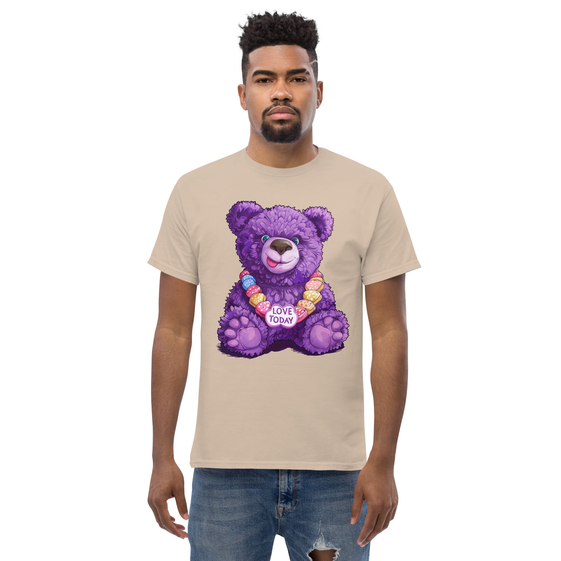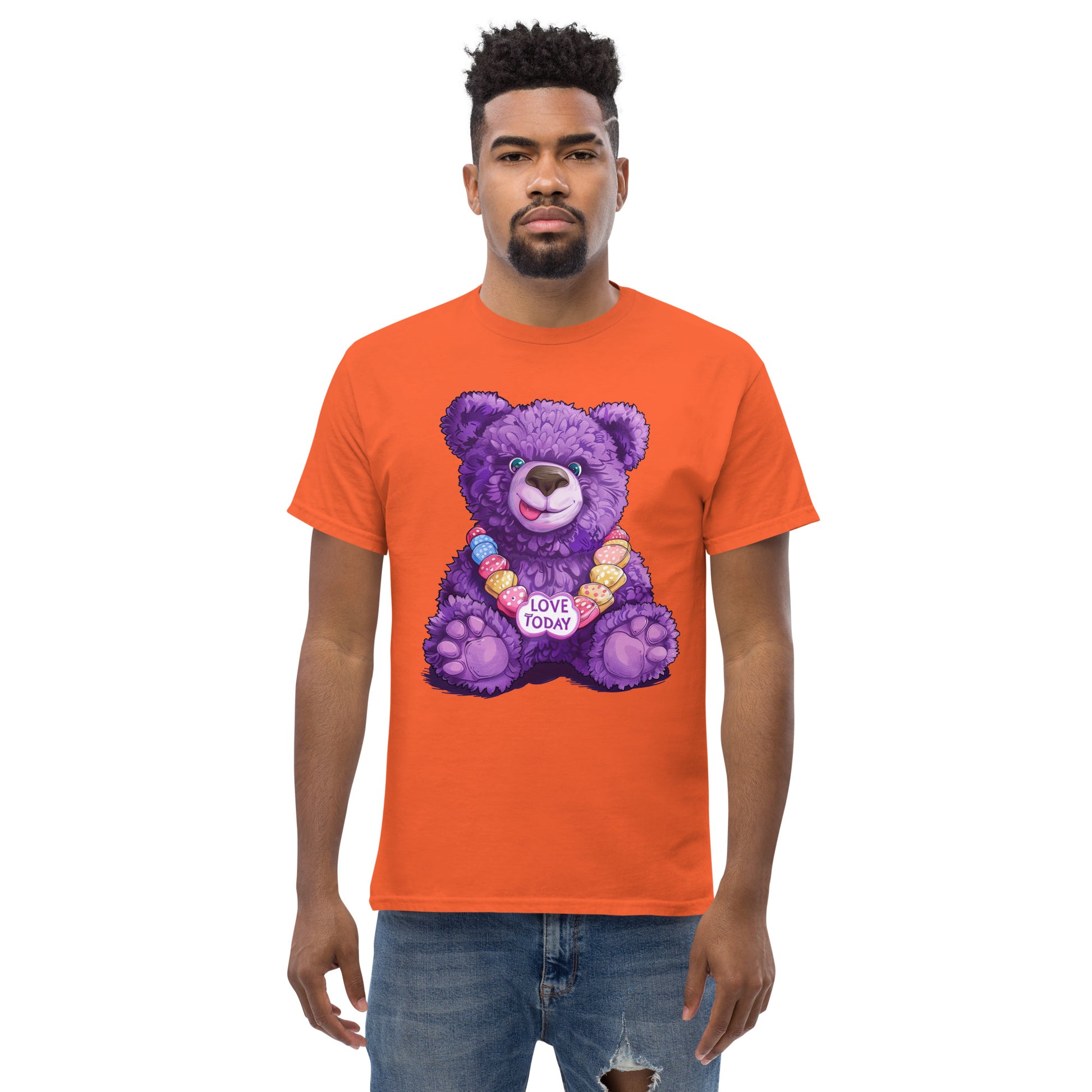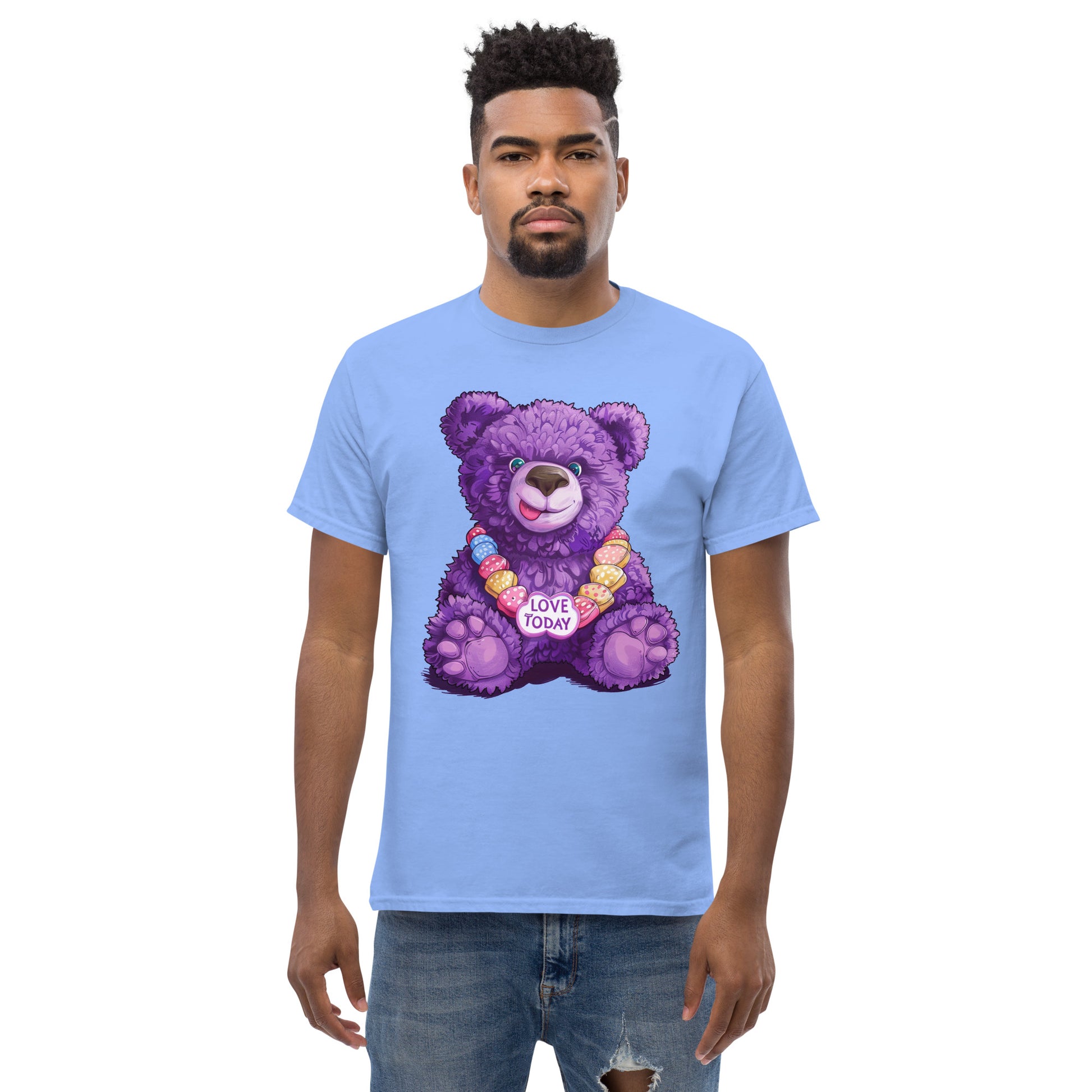 Join the "Cuddle Crew" with our Party Bear T-Shirt, where comfort meets jubilant design. This tee features the cheerful purple Party Bear, ready to bring a smile and a splash of fun to your day. Emblazoned with candy hearts that echo the "Love Today" motto, it's a wearable reminder to embrace the sweetness of life. Perfect for those who love to wear their heart on their tee and spread happiness wherever they go.